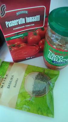 Lisää paseerattu tomaatti, tacokastike ja mausteet.
